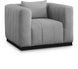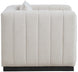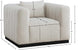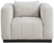 Succumb to the welcoming comfort of this Lucia textured linen fabric living room chair. This oversized chair offers you the room you need to cozy up with a book or a cup of hot tea. Its rich beige linen textured fabric feels soft and inviting against the skin, and the plump back cushion adds to its relaxing feel against your body. Deep channel tufting keeps the chair's fill intact, and it rests on a contrasting black solid wood base for resilient support.