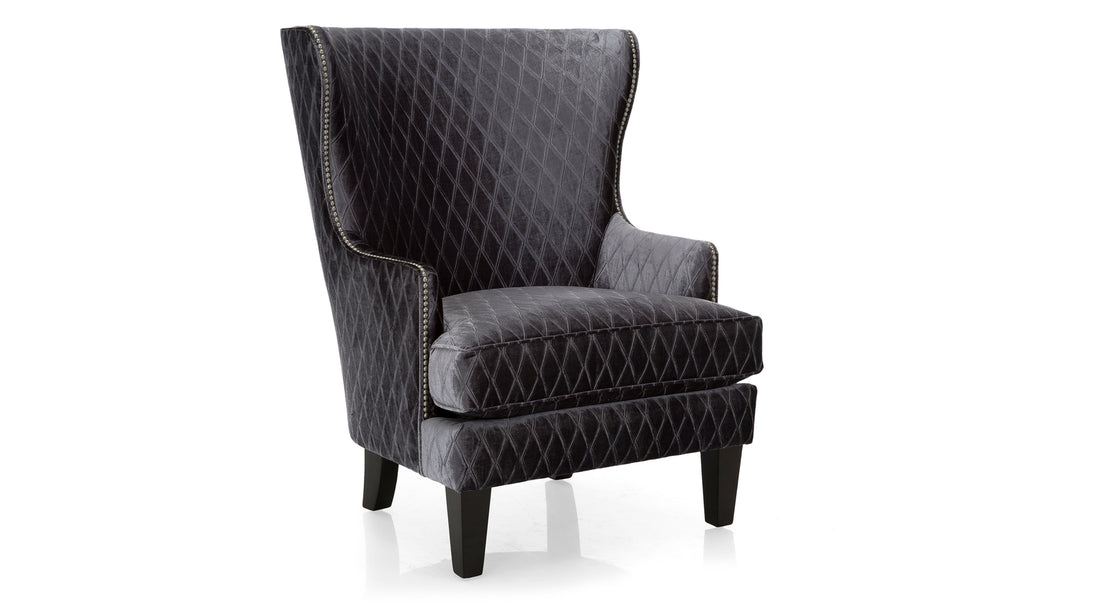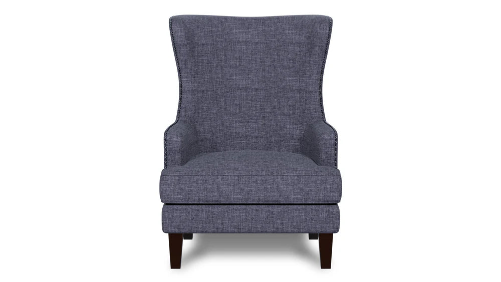 The Majestic Wing Chair is a timeless and dramatic statement piece. Designed with a slight wing, slender inviting arms, and an elegantly curved back, this chair adds sophistication to any room. Customize it with 2-tone fabric options or optional nail studs for added flair.