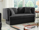Bring artsy fun to your room with this Marcel black boucle fabric loveseat. This eye-grabbing loveseat is part art, part functional seating item for your living room, bedroom, and beyond. The rich black boucle fabric is soft and yielding against the skin, keeping you comfortable while you unwind and relax. The contemporary inspired design is bound to garner attention no matter where you choose to use it.