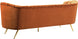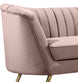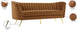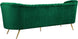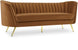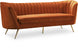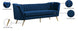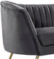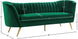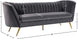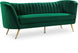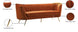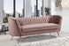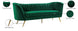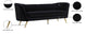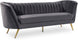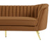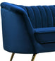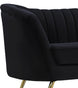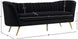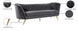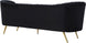 Lean back and lounge in luxurious style on this stunning Margo black velvet sofa by Meridian Furniture. This contemporary sofa features plush velvet upholstery that is both classy and sumptuous against your skin, a single seat cushion and rounded arms that curve into a low, rounded back, creating a perfect, modern piece for your home. Gold stainless steel legs support this sofa and provide stunning contrast to the sofa's plush, black fabric.
