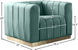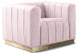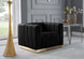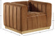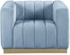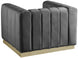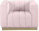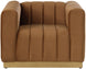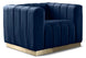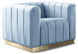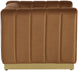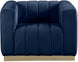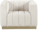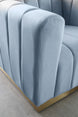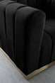 Seat guests in the epitome of comfort and style with this Marlon velvet chair. This piece is just the thing to showcase your modish style while ensuring total enjoyment from all who are lucky enough to relax on its channel tufted seats. The soft velvet upholstery adds a beautiful touch to your space and feels great against your skin while the brushed gold stainless steel base lends it a contemporary finish.