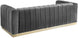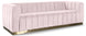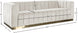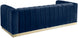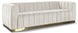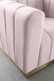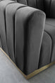 Seat guests in the epitome of comfort and style with this Marlon velvet sofa. This piece is just the thing to showcase your modish style while ensuring total enjoyment from all who are lucky enough to relax on its channel tufted seats. The soft velvet upholstery adds a beautiful touch to your space and feels great against your skin while the brushed gold stainless steel base lends it a contemporary finish.