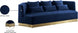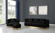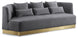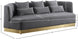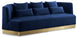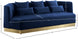 Revamp your living room, den or great room with this Marquis velvet sofa. This handsome piece features a bold contemporary look that's well at home in most modern decor themes. Plump pillows add a little something extra to make you feel extra cozy. Upholstered in soft black velvet, this piece fits in nicely with nearly any other colors in the room, and the brushed gold stainless steel base ensures its up-to-the-minute look.