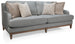 This sofa combines graceful curves with tailored detailing to create a timeless design. A gently sloped arm and deep seat cushions offer inviting comfort, while versatile styling allows you to choose between a refined show-wood base or sleek flared legs.