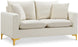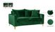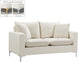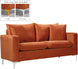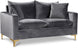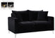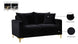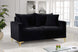 Curl up with a good book from the welcoming confines of this Naomi Black Velvet Loveseat. The color of this loveseat adds a bold touch to your decor and shakes up otherwise neutral color schemes. Plush velvet material feels cozy and comfortable against your skin, while deep seat cushions provide lots of room for you to stretch your legs. This loveseat comes with both gold and chrome legs, so you can customize its look to meet your decor plans. Pillows are included for added homey warmth and comfort.