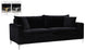 Curl up with a good book from the welcoming confines of this Naomi Black Velvet Sofa. The color of this sofa adds a bold touch to your decor and shakes up otherwise neutral color schemes. Plush velvet material feels cozy and comfortable against your skin, while deep seat cushions provide lots of room for you to stretch your legs. This sofa comes with both gold and chrome legs, so you can customize its look to meet your decor plans. Pillows are included for added homey warmth and comfort.