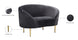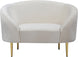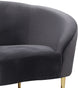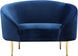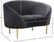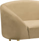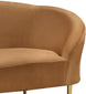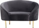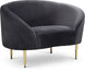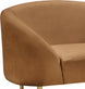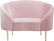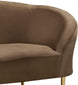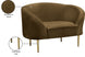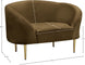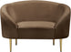 Get comfy while remaining chic in this elegant Ritz brown velvet chair. Plush brown-colored upholstery provides a soft texture that is pleasing to the senses, while its curved design offers a contemporary touch to your home furnishing. Gold metal legs complement the chair's sophisticated brown color, creating a gallant piece anyone would be proud to display in their home.