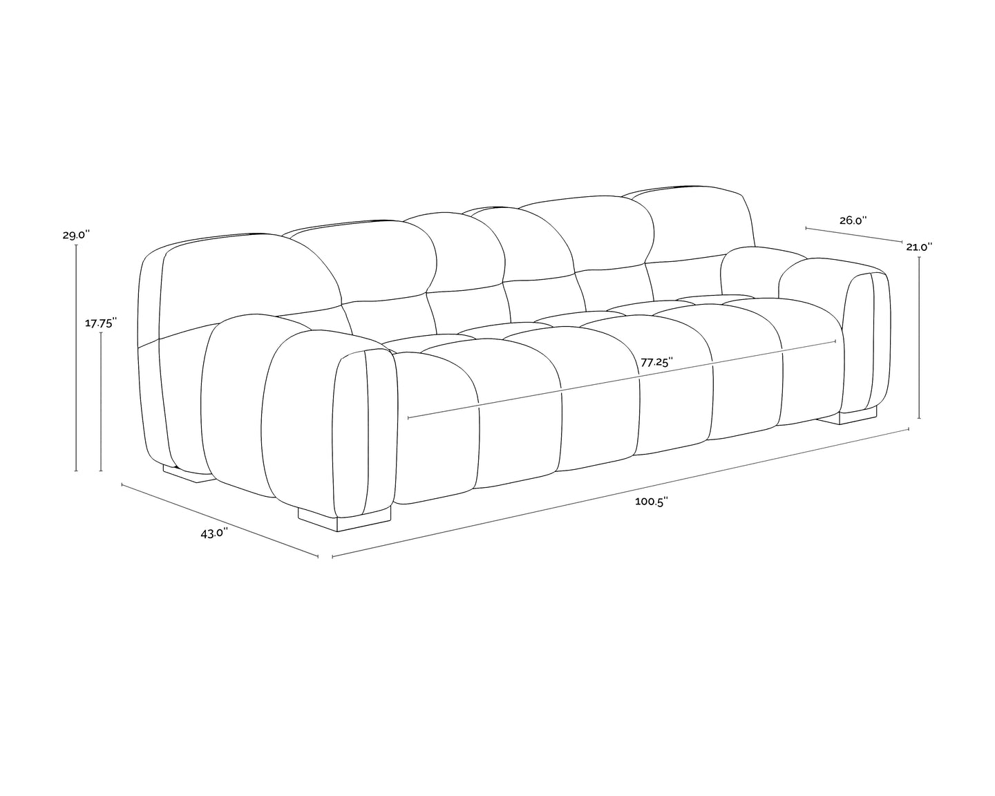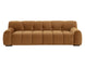 Plush proportions and tufted cushioning bring a visual softness to the Romy Sofa. Generously upholstered in our meg gold fabric with distressed brown beech wood legs for a stunning look that radiates comfort.