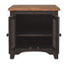 - Two-tone distressed finish (light brown top and rustic vintage black base)