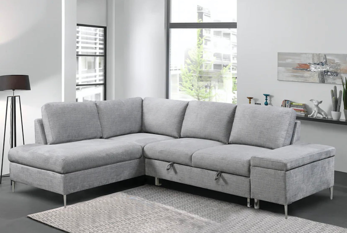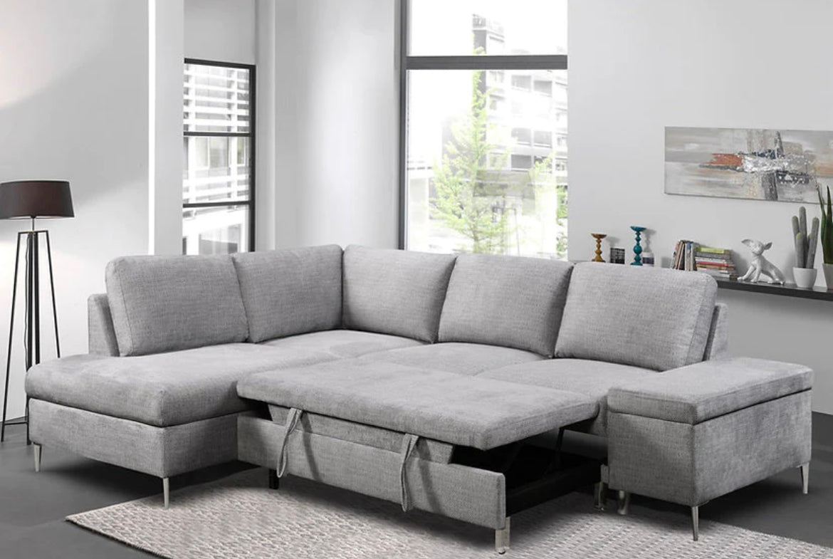 Walter 9022 Grey Fabric Sofa Bed Sectional w/ Storage Ottoman
