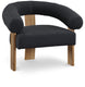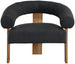 Give your room a distinctly modish look when you bring home this Winston boucle fabric accent chair. This handsome chair has a true mid-century modern design with its rounded back and wooden frame. Black boucle fabric is soft to the touch and durable too, so it gives the chair longevity and resistance to damage. Solid wooden legs form a strong foundation for this pretty seat that's perfect for the living room, bedroom or other area.