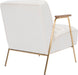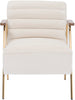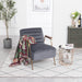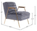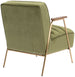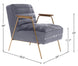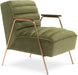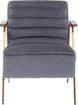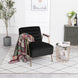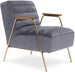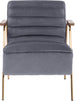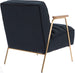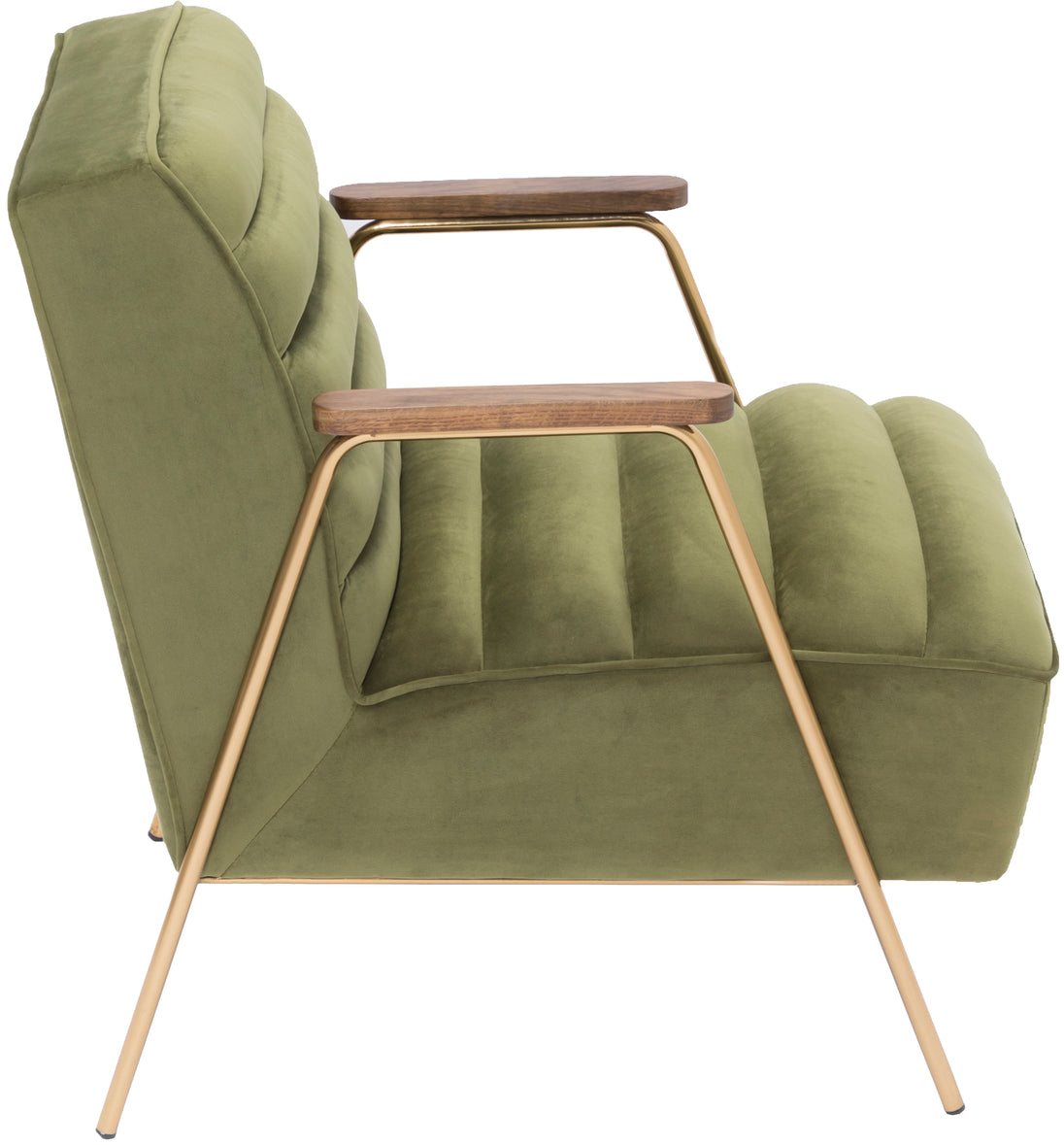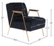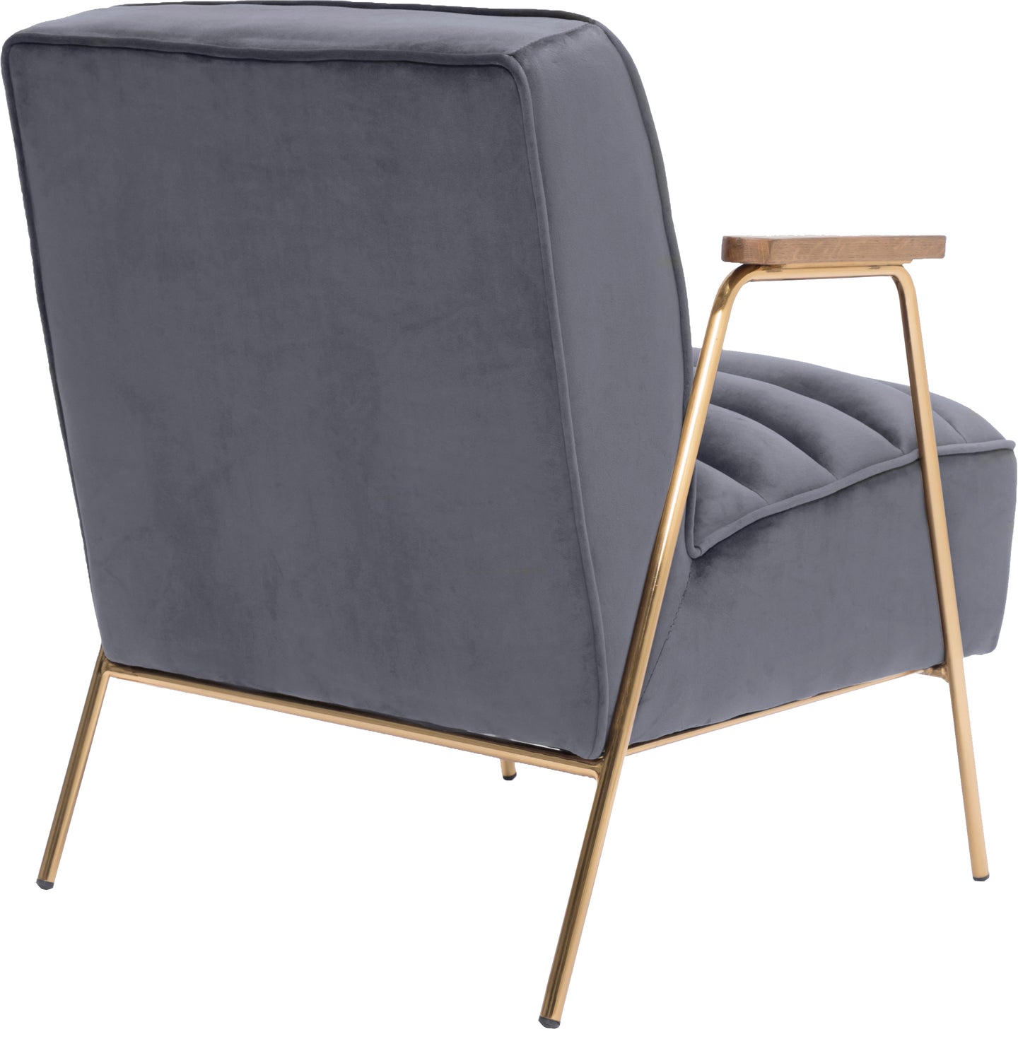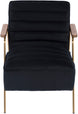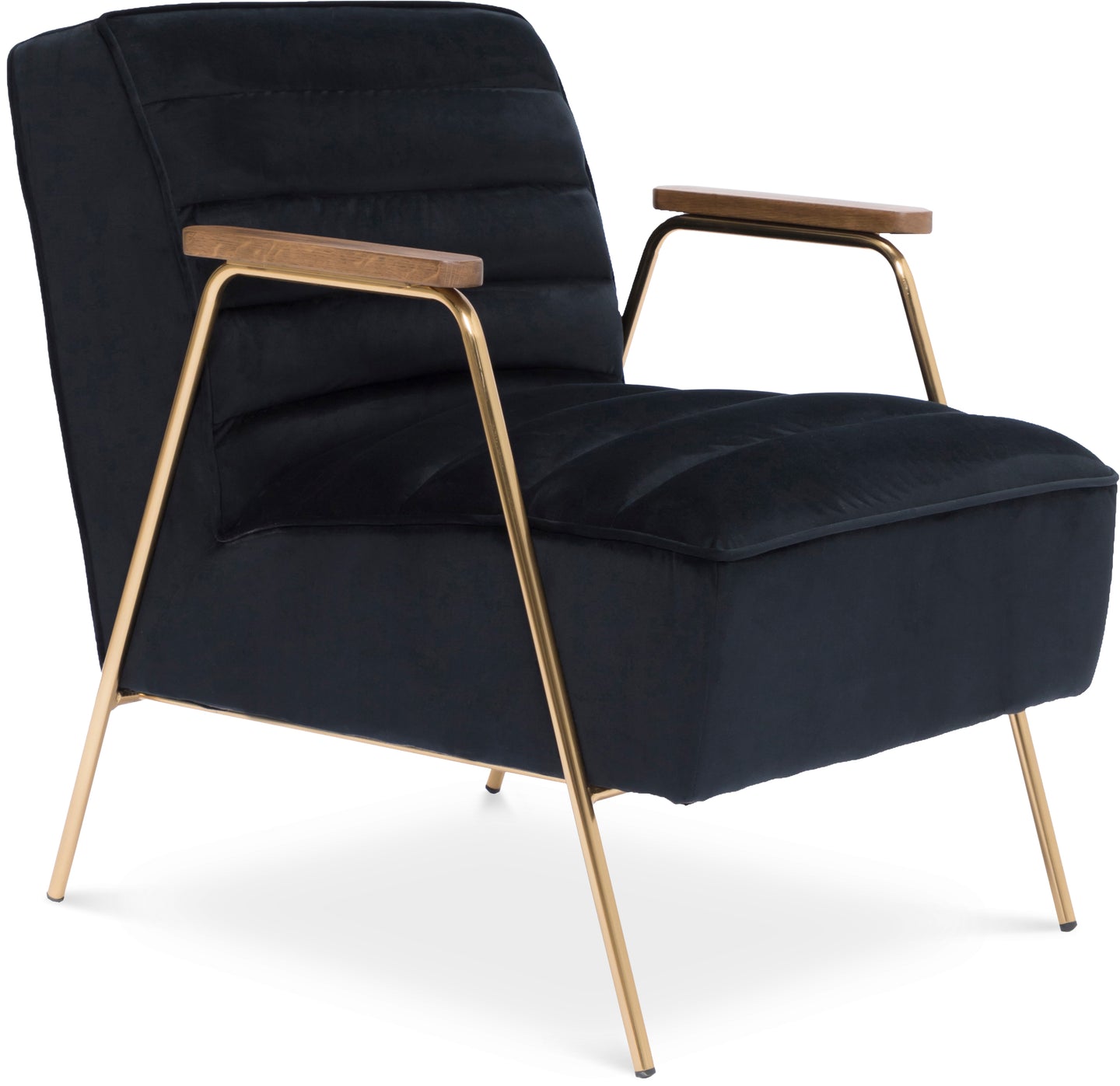 Go mod in your living room, den or other space with this Woodford velvet accent chair. This lovely addition to your home features soft black velvet upholstery for a lavish look in any room. The back and seat are channel tufted for added resilience and lasting beauty. The metal frame adds enduring quality to this chair, and the brushed gold metal legs and wood arms lend it a definitive contemporary vibe.