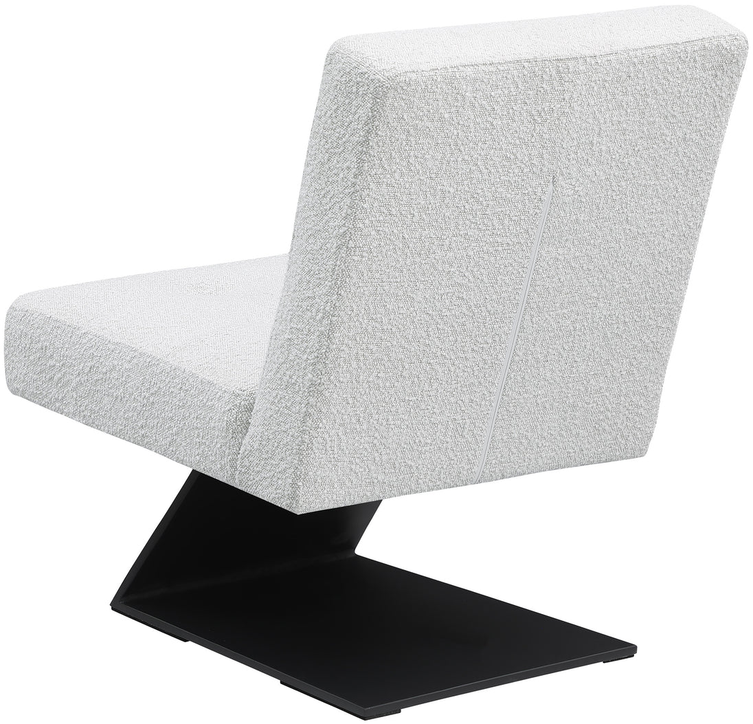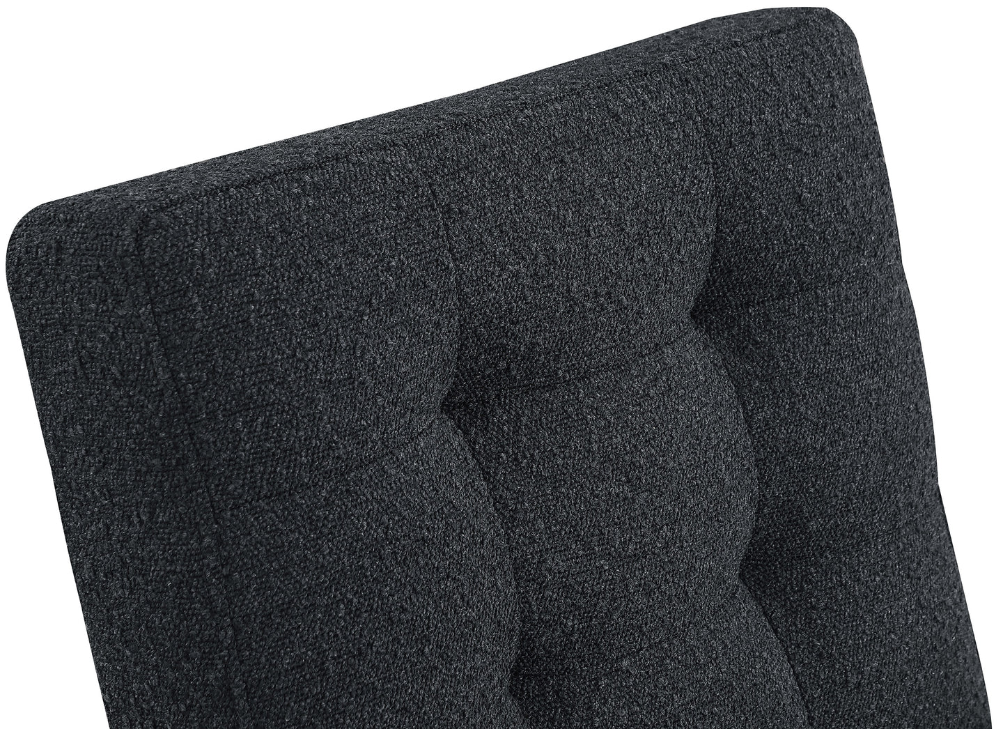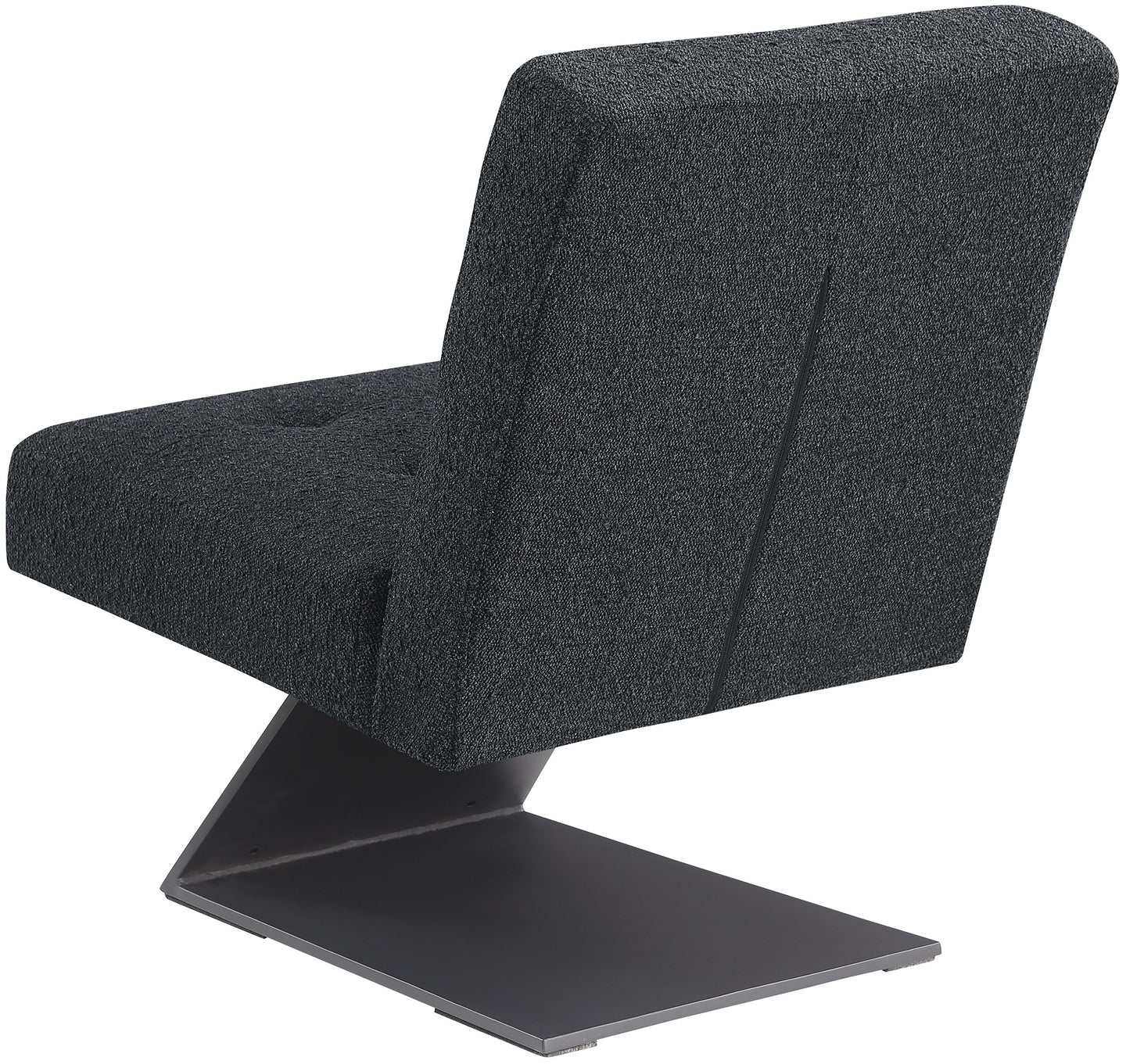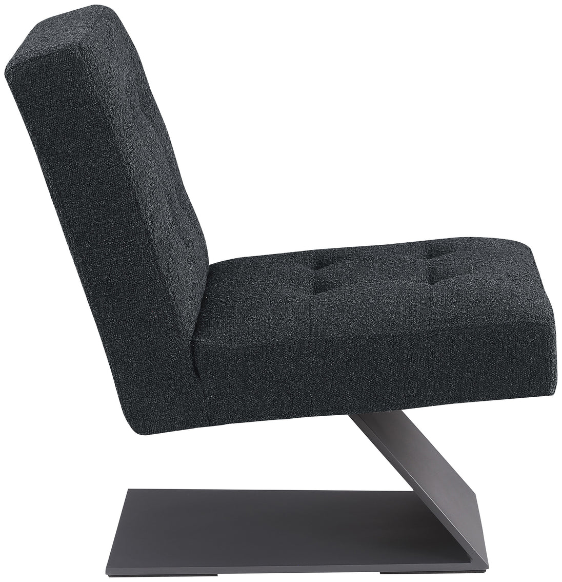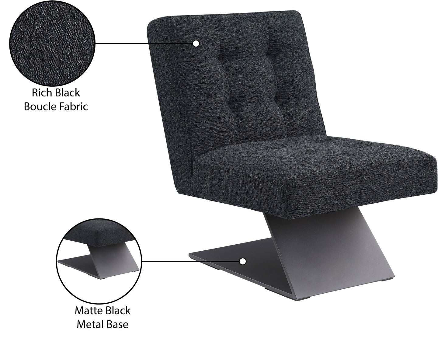 Rest your bones in style when you're kicked back in this Zeal boucle fabric accent chair. This handsome chair rests on a slanted base, giving it a silhouette that's not easy to miss, no matter where you choose to use it. Upholstered in rich black boucle fabric from the top of its back to the seat, this chair rests on an all-metal base for impeccable sturdiness and reliability.