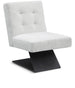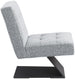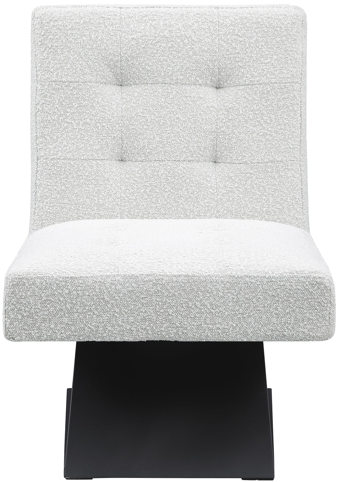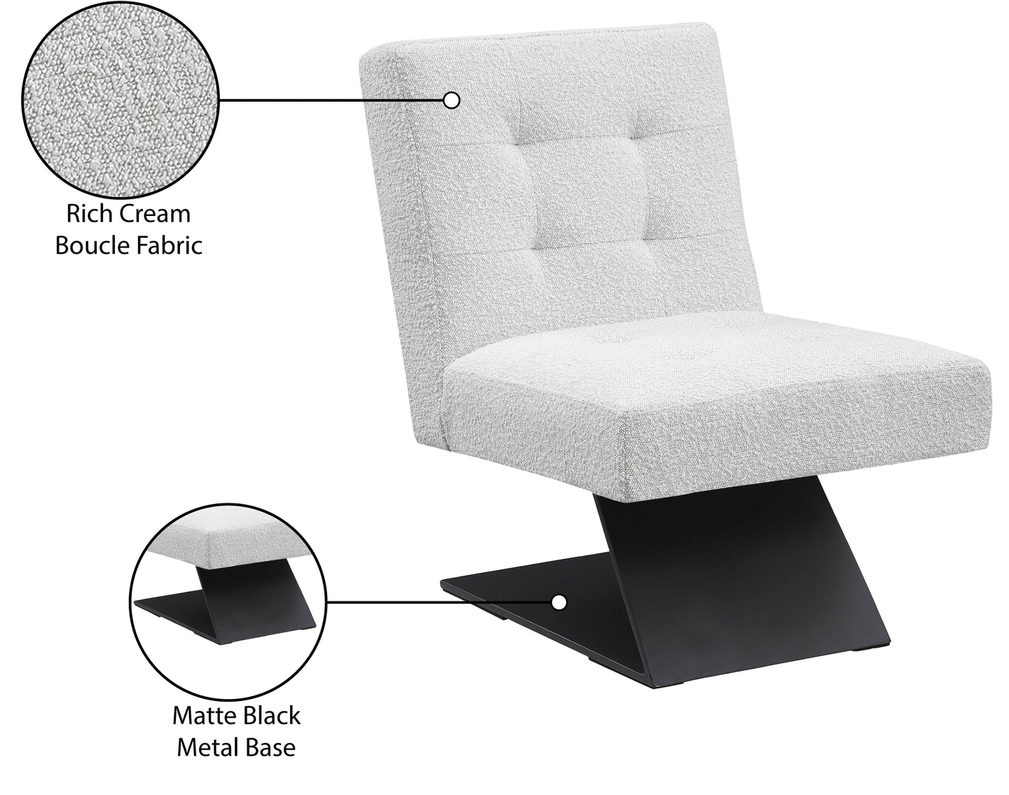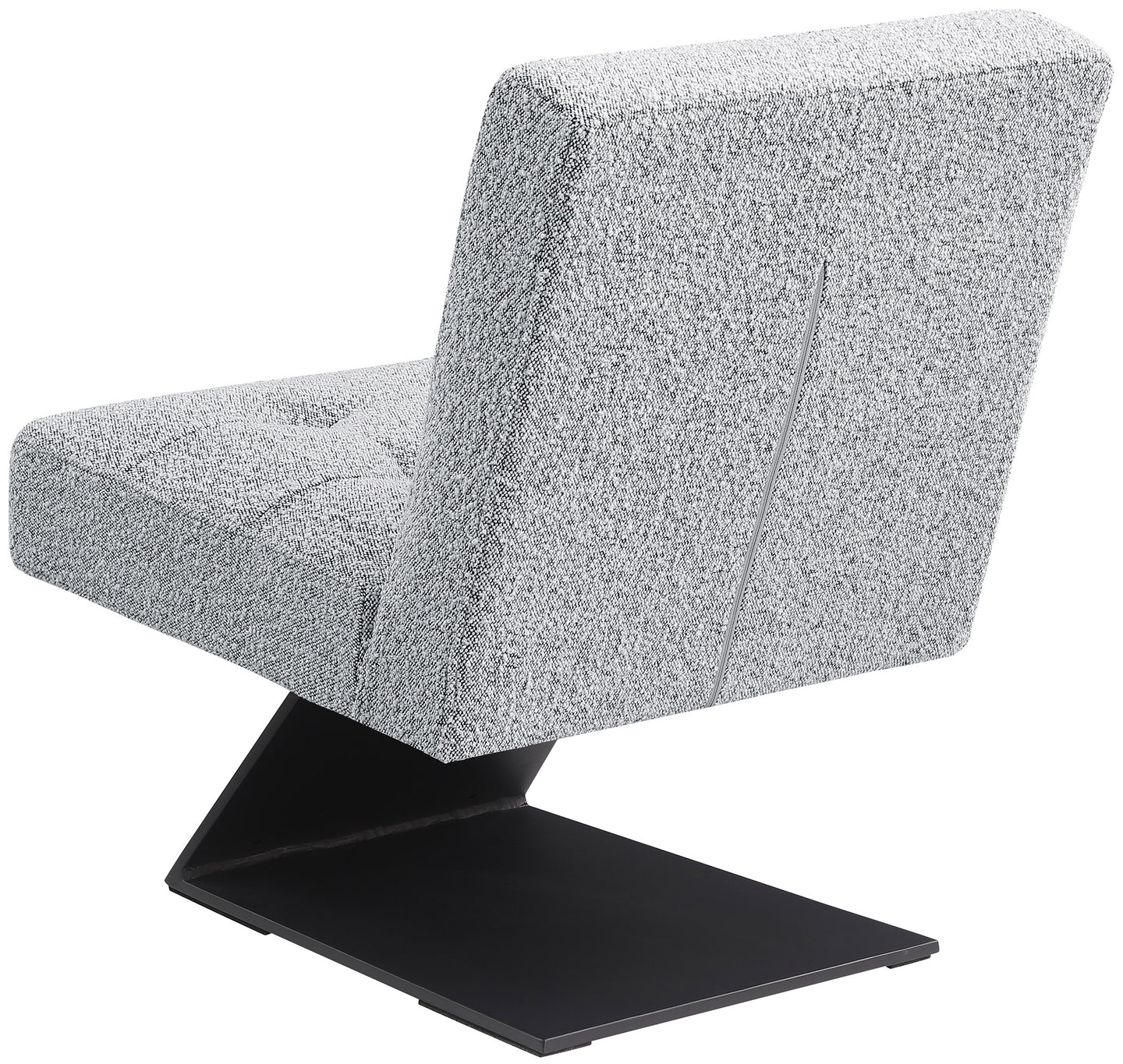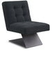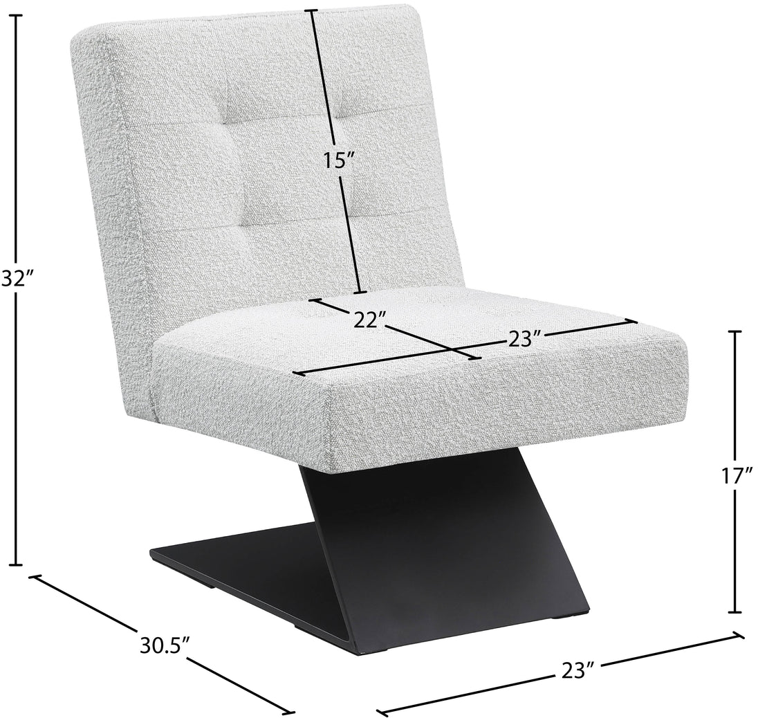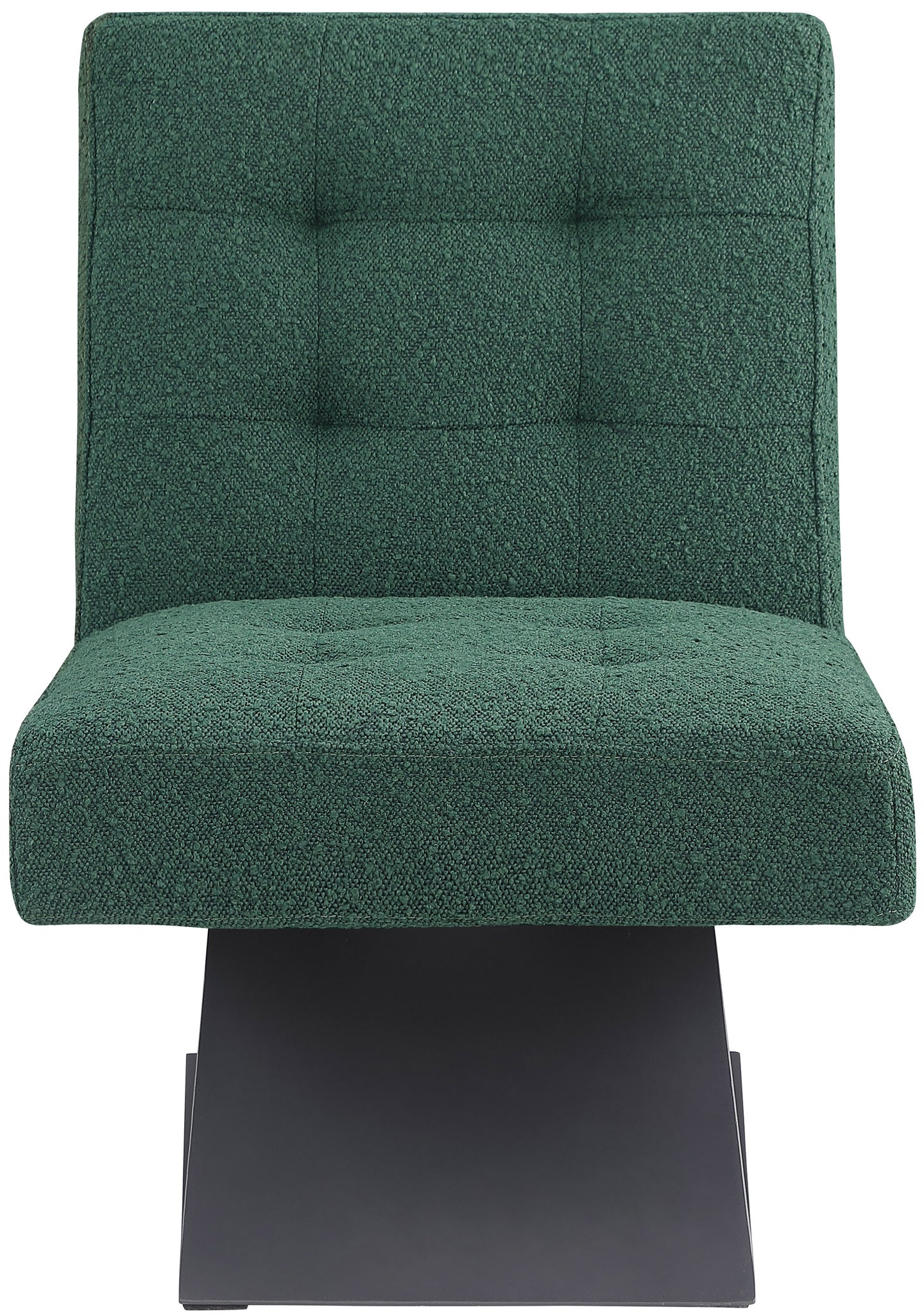 Rest your bones in style when you're kicked back in this Zeal boucle fabric accent chair. This handsome chair rests on a slanted base, giving it a silhouette that's not easy to miss, no matter where you choose to use it. Upholstered in rich black boucle fabric from the top of its back to the seat, this chair rests on an all-metal base for impeccable sturdiness and reliability.