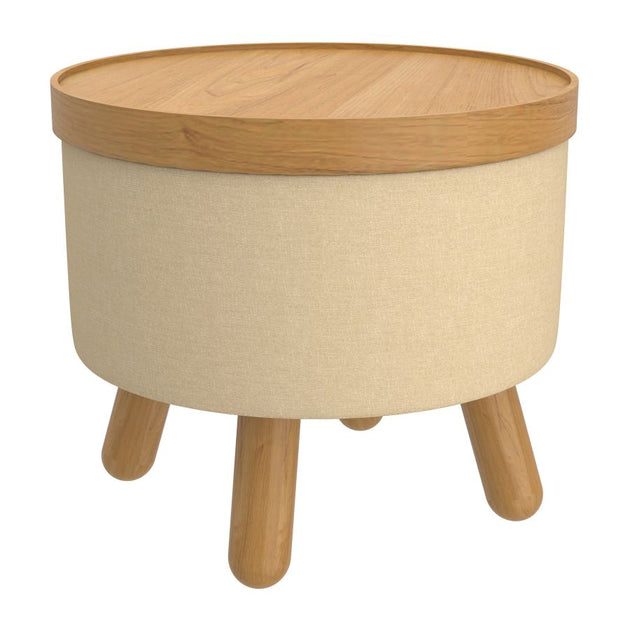 Betsy Round Storage Ottoman with Tray in Beige and Natural