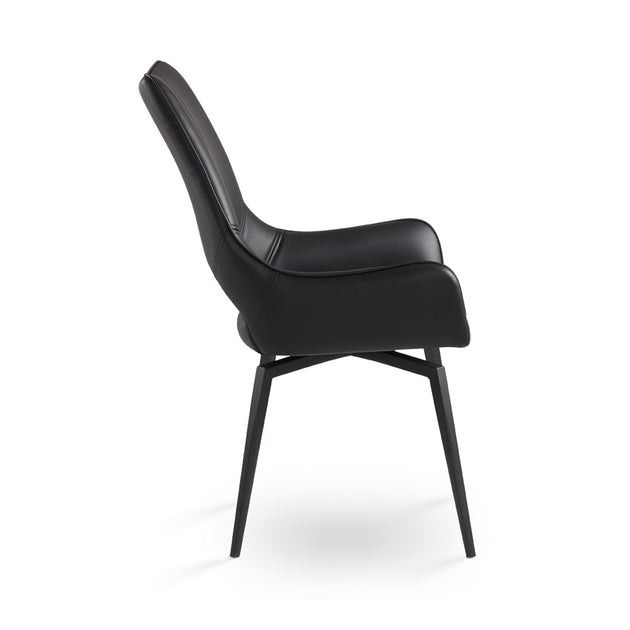 Bromley Swivel Dining Chair: Black Leatherette with Black legs