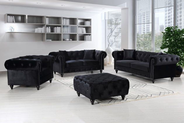 Chesterfield Black Velvet Sofa