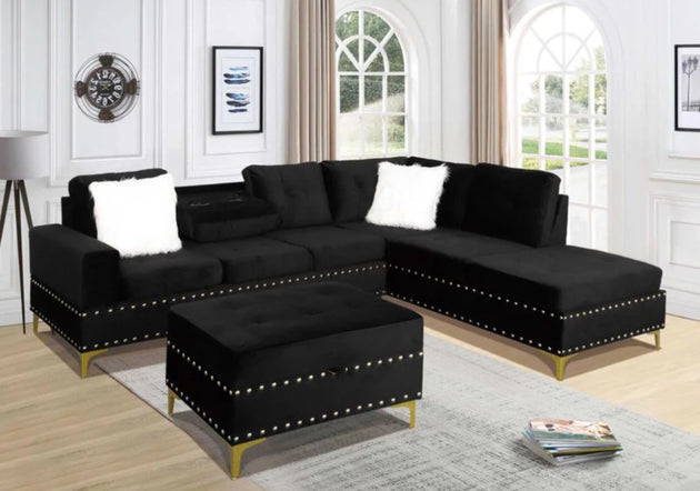 Conroy Reversible Sectional with ottoman- Velvet Fabric