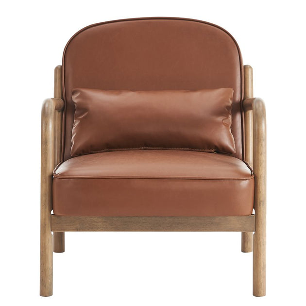 Fani Accent Chair, Faux Leather in Saddle and Walnut