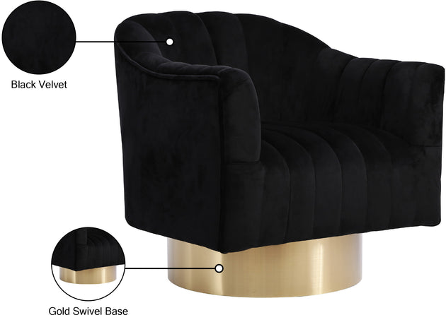 Fani Accent Chair, Faux Leather in Black and Walnut