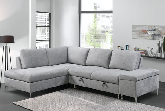 Walter 9022 Grey Fabric Sofa Bed Sectional w/ Storage Ottoman