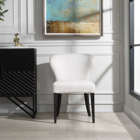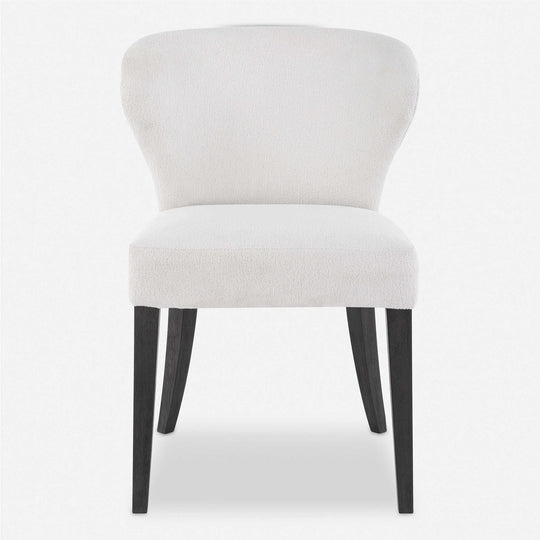 Crisp and classic style is featured in the soft wingback design of this dining chair, wrapped in an off white low pile boucle fabric with satin black hardwood legs. Seat height is 19". Packed 2 per...Sale price $679.00Regular price $999.00Sale price $679.00Regular price $999.00 -
