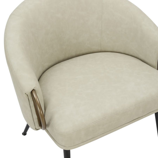 Zita Accent Chair in Vintage Ivory Faux Leather and Black and Aged Gold