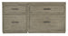 - Finish: Mink: A soft smoked gray finish. Textured metal bar pulls in an antique pewter finish.