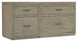 With a rustic weathered smoked gray Mink finish and clean modern lines, the multi-functional Linville Falls Credenza includes a roomy 60-inch top, a small file on one side and a lateral file on the other. Altogether, there are 4 drawers, including 2 top utility drawers, and the lower drawers are locking file drawers with pendaflex filing systems. Fully finished on the back, the desk can be floated in a room.