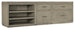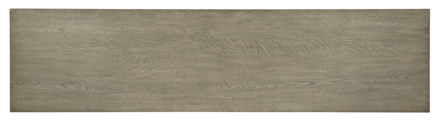 Capturing the essence of nature’s organic color palette on a clean-lined, simple silhouette, the Linville Falls Credenza fuels inspiration with streamlined organization. Crafted of Oak Veneers with a soft smoked gray Mink finish, the expansive 96-inch wide top has a functional base including a small file in the center and a lateral file on one end and an open desk cabinet on the other. Altogether, there are 4 drawers, with the top drawers serving as utility drawers and the lower drawers having a locking file with pendaflex filing system. The roomy desk cabinet has 2 adjustable shelves. The credenza is fully finished on the back so it can be floated in a room.