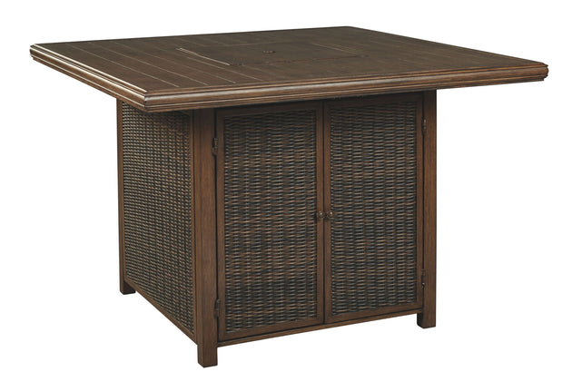 Paradise Trail - Square Bar Table w/Fire Pit - Medium Brown
