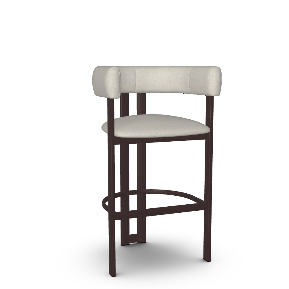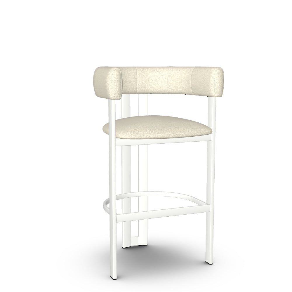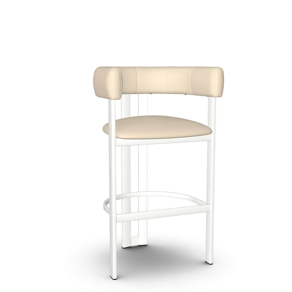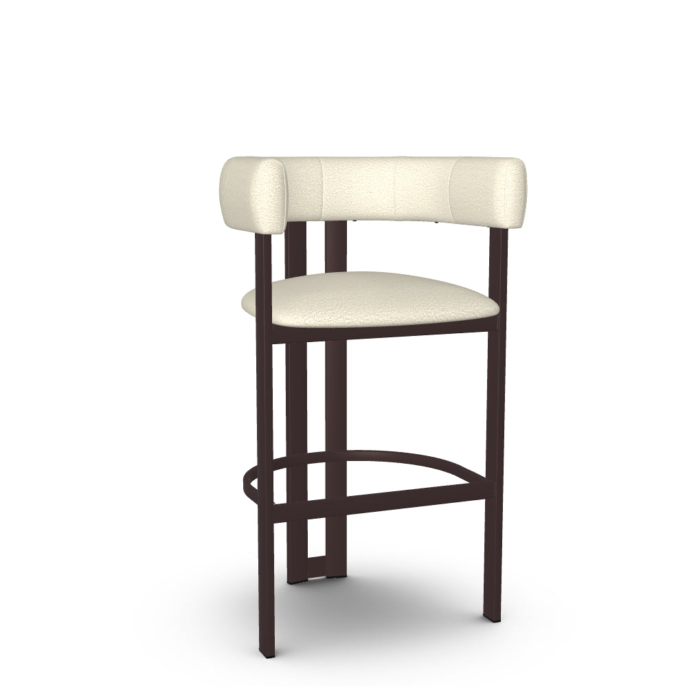 The Clarissa stool is a standout addition to any modern kitchen. Its sleek design radiates sophisticated charm that aligns perfectly with contemporary interiors. Combining elegance and comfort, the beautifully curved backrest flows seamlessly into armrests, providing support during long conversations around the table. And when you're done, simply tuck it under the counter to save precious space. With its sturdy metal base crafted for long-lasting durability and its undeniable aesthetic appeal, this counter or bar stool is an essential piece for your home decor.