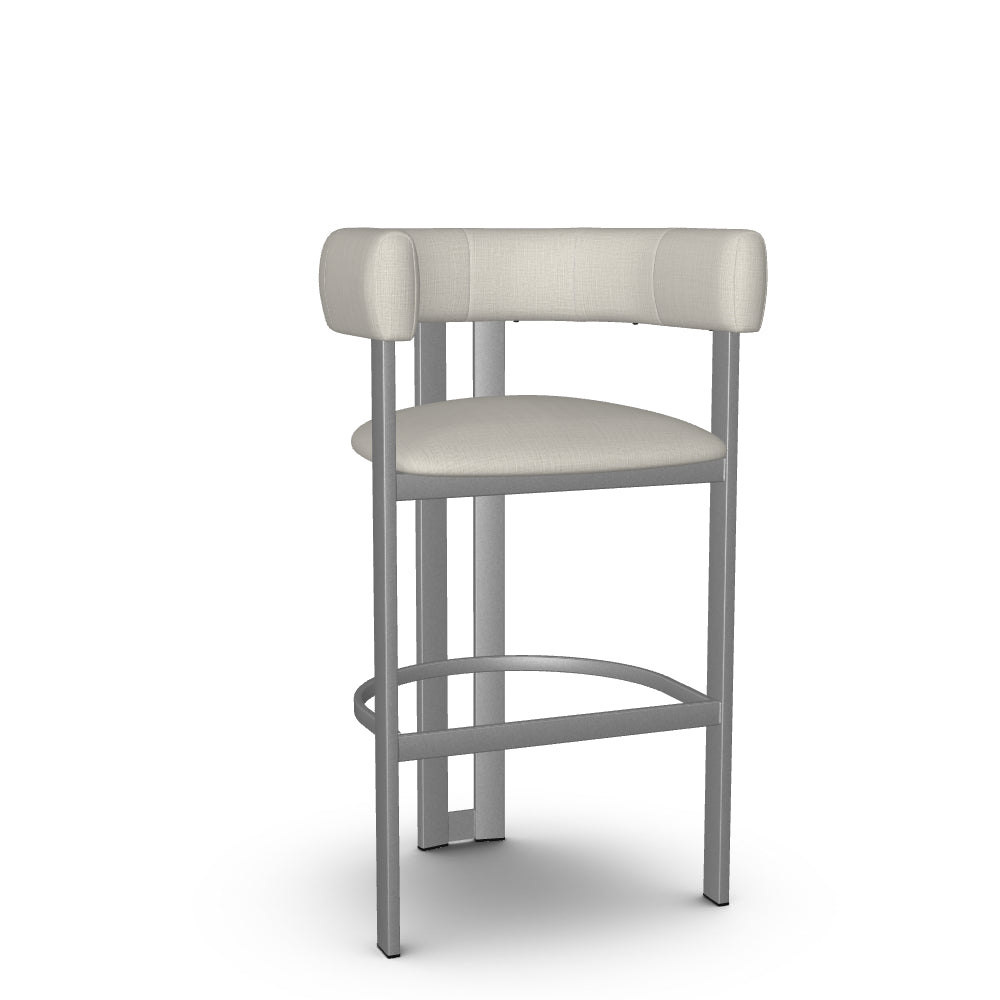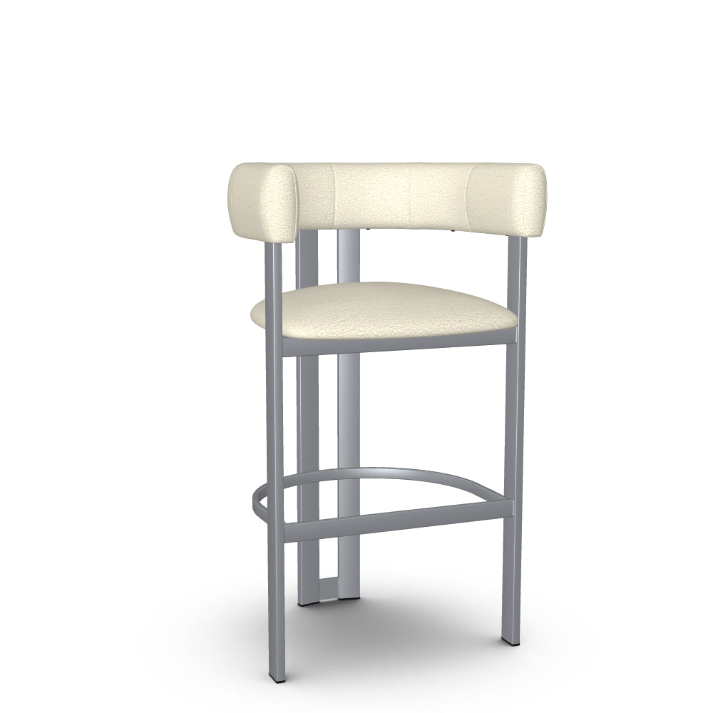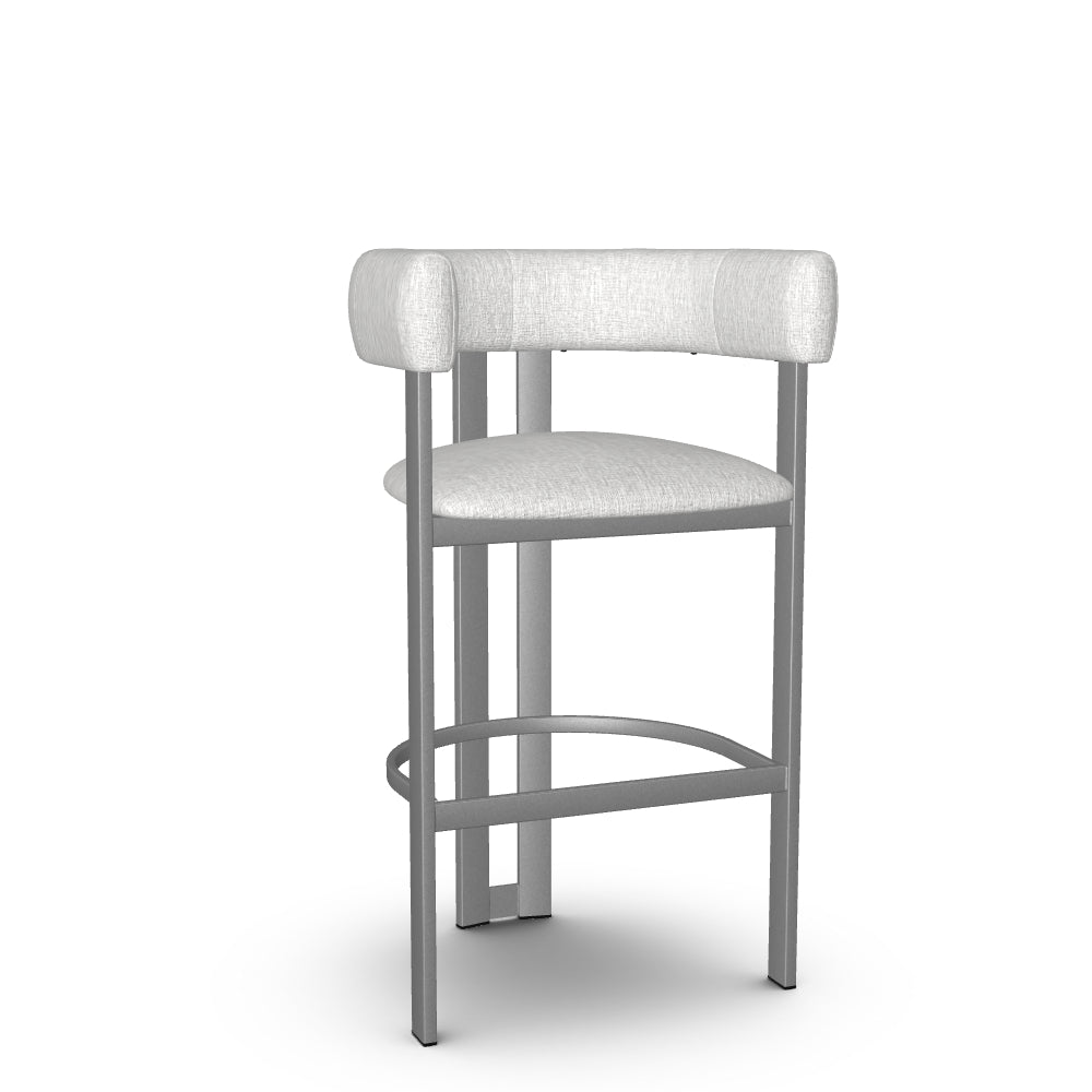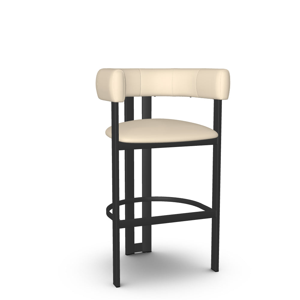 The Clarissa stool is a standout addition to any modern kitchen. Its sleek design radiates sophisticated charm that aligns perfectly with contemporary interiors. Combining elegance and comfort, the beautifully curved backrest flows seamlessly into armrests, providing support during long conversations around the table. And when you're done, simply tuck it under the counter to save precious space. With its sturdy metal base crafted for long-lasting durability and its undeniable aesthetic appeal, this counter or bar stool is an essential piece for your home decor.
