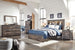 Burnt orange and teal colors accent a brown rustic finish in a replicated woodgrain with authentic touch. Large scaled dark colored handles. Cases feature a framed front and pilasters. All panel headboards (53,57,58,87) feature decorative matte black sconce lights. Side roller glides for smooth operating drawers. All panel headboards (53,57,58,87) can attach to a bolt-on metal bed frame B100-31 or B100-66 respectively. Drawers lined with a faux linen laminate for a clean, finished look. Slim profile dual USB chargers located on the back of the night stand top and the side of the headboards. All side storage options (50,150,60,160) requires the use of the B100-11, B100-12, B100-13 or the B100-14 roll slats. All under bed storage units (50,150,60,160) accommodates to 10.5"W x 10.5"D x 11"H cube storage bins. LED lights accent bookcase headboards (63,65,69,85). All beds have a panel footboard (52,84,54,56) and storage footboard option (52S,84S,54S, 56S). Queen (65) and king (69) headboards can attach to a bolt-on metal bed frame B100-21, B100-31 or B100-66 respectively. Twin (63) and full (85) headboards can attach to a bolt-on metal bed frame B100-21. Safety is a top priority, clothing storage units are designed to meet the most current standard for stability, ASTM F 2057 (ASTM International). Drawers extend out to accommodate maximum access to drawer interior while maintaining safety.