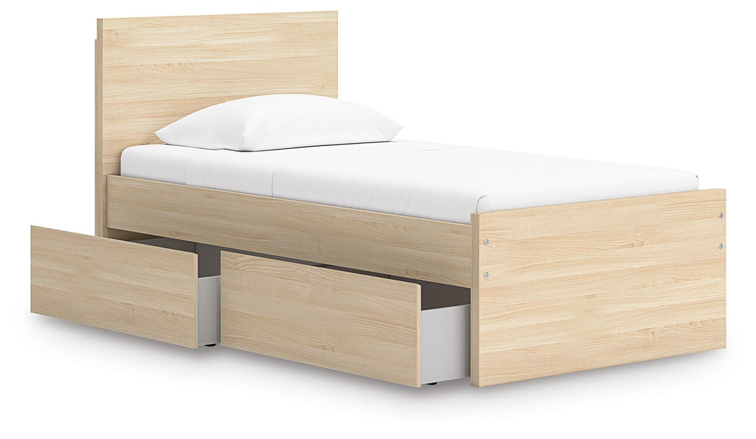 Onita - Twin Panel Platform Bed With 1 Side Storage - Natural