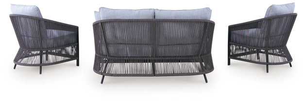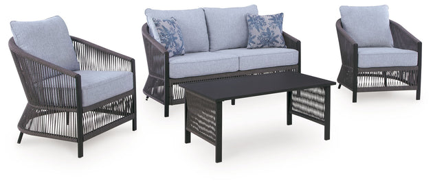 Bridges Beach - Loveseat, Lounge Chairs, Table Set (Set of 4) - Gray