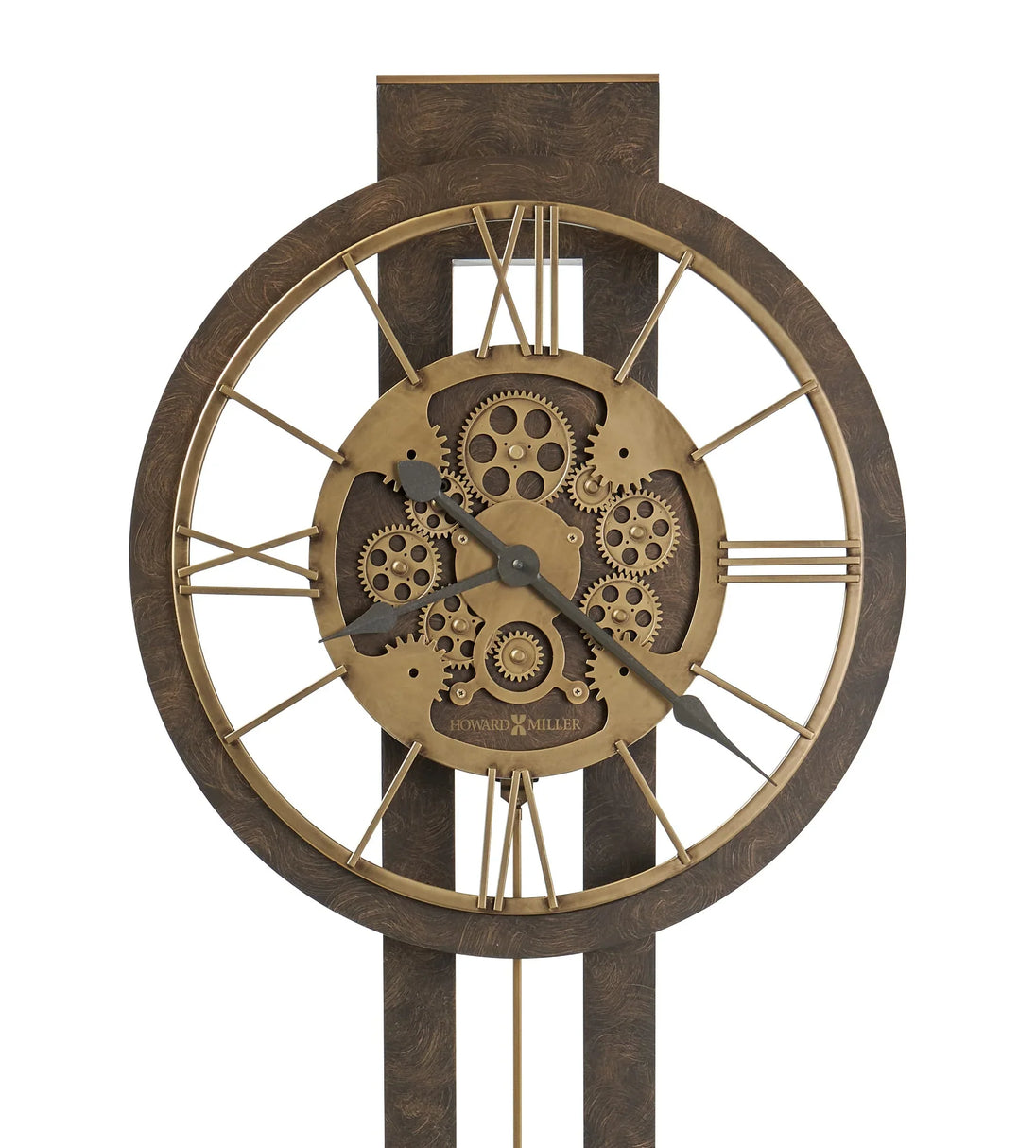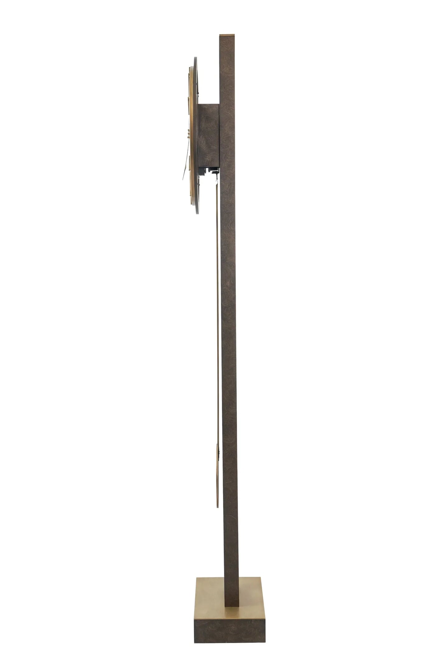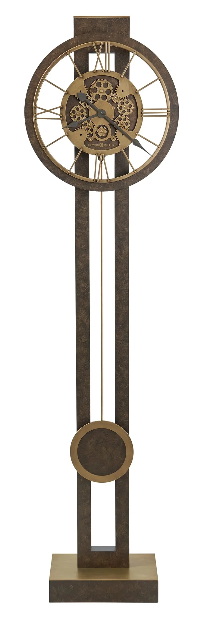 - Charcoal Black Elegance: The Finnley Floor Clock boasts a sophisticated charcoal black finish with aged brass wire brushing, showcasing the impeccable craftsmanship on select hardwoods and veneers.