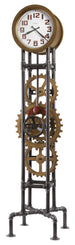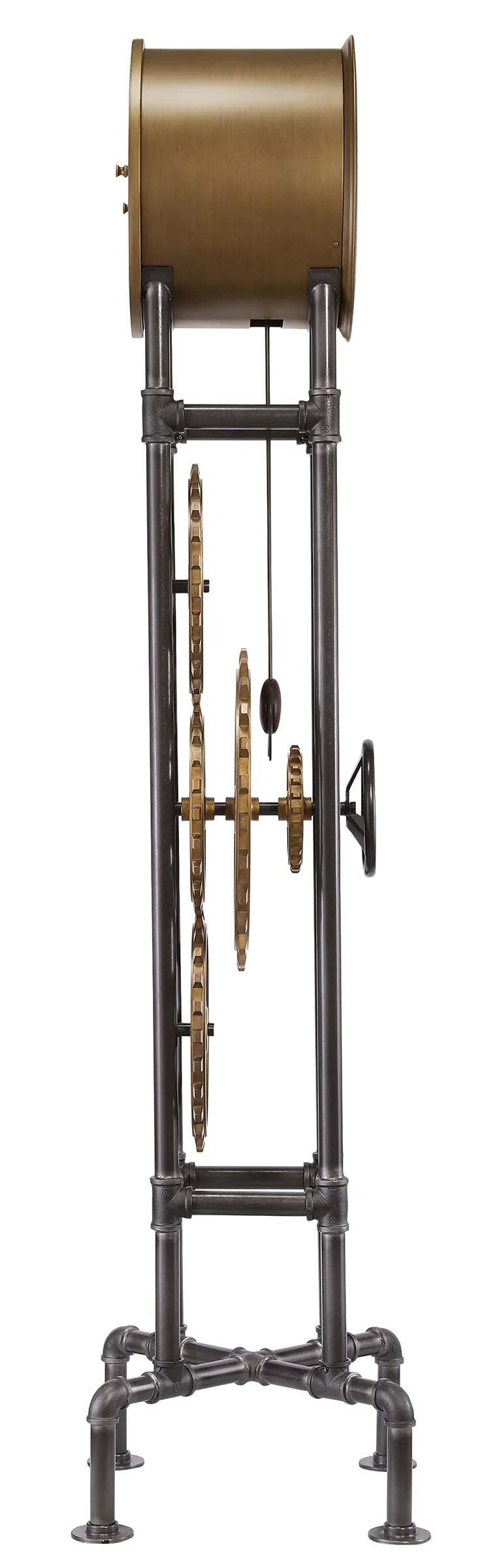 - Quartz Movement: This floor clock hasquartz movement and requires one AA and two D batteries (not included). It moves like a mechanical clock to enhance the industrial look of this unique piece.