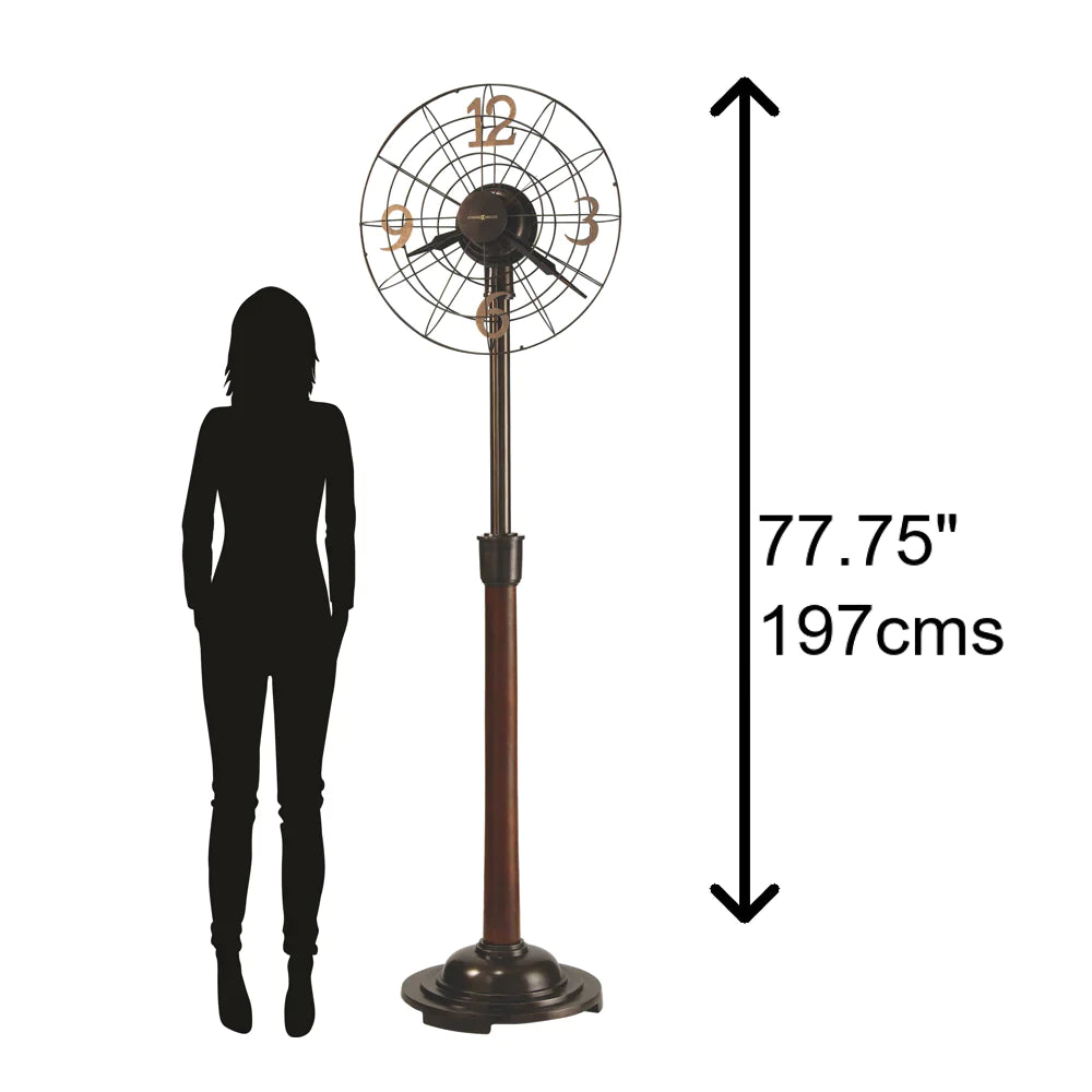 The Howard Miller 615096 Phan Floor Clock will enhance any living space. This metal and wood floor clock is inspired by the nostalgic design of a 20th Century industrial fan. The unique shape and design of this grandfather clock make it a striking focal point in any room.