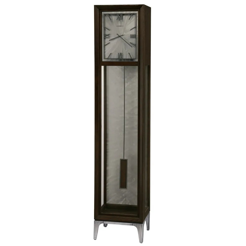 Stunning Pendulum: The Reid Grandfather Clock also features an aged charcoal-finished pendulum with a rectangular bob surrounding a woodgrain insert that swings in front of a machined steel background.