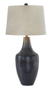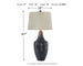 - Made of indigo and goldtone metal with fabric modified drum shade