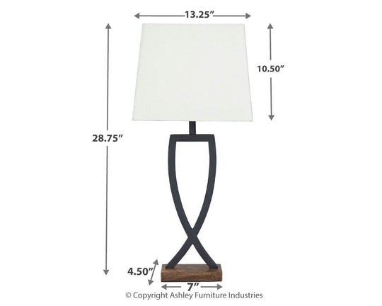 This table lamp is an enticing merge of mixed materials. Textured black finished metal stands poised atop a block of warm brown wood. Open design is right at home among casual decor. Makara - Metal Table...Sale price $139.99Regular price $299.99Sale price $139.99Regular price $299.99 -