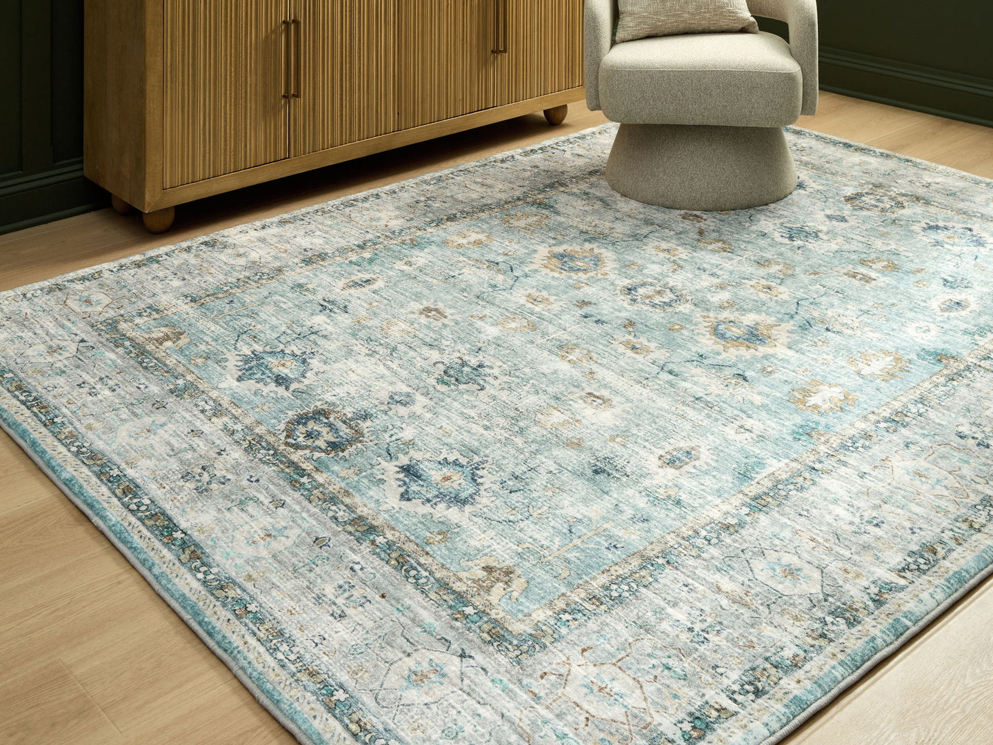 Ladstoney - Large Rug - Teal / Beige / Ochre