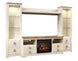 Willowton - Entertainment Center - TV Stand With Faux Firebrick Fireplace Insert - Whitewash
