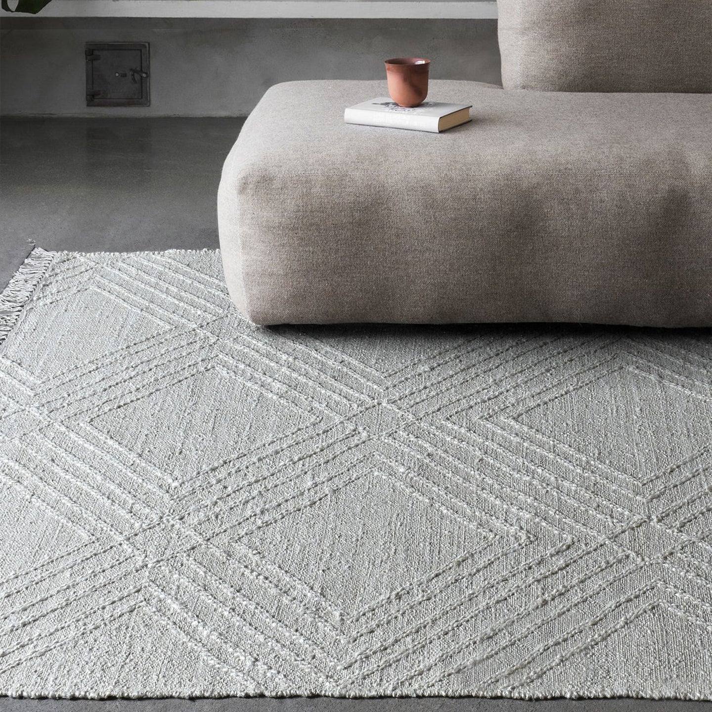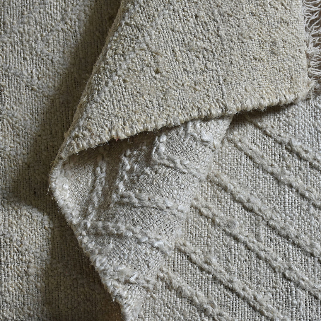 This Hand Woven Rug Has A Nubby Surface Constructed Of Hemp And Undyed Wool With Braided, Raised Geometric Pattern.Product Features