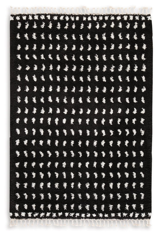 Sink your feet into this modern area rug. Offering a luxurious shag with a woven dot design in black and white, it adds sophistication without sacrificing comfort or durability. A braided tassel edge completes the design...Sale price From $189.99Regular price $299.99Sale price From $189.99Regular price $299.99 -