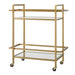 Entertain In Style With The Erena Bar Cart. Its Sleek Brass Finished Stainless Steel Frame And Two Glass Shelves Provide Ample Space For Serving Drinks And Showcasing Your Favorite Bottles And Glassware.