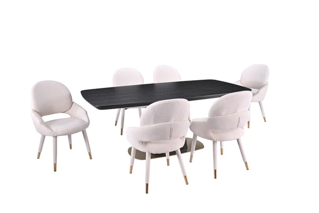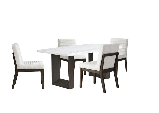Rocca/Lyna 5pc Dining Set in Walnut with Beige Chair
