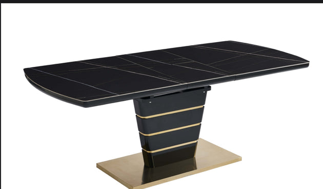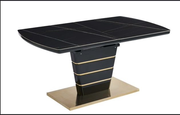 Rebecca Black Faux Marble Dining Table Set With Black Velvet Chairs