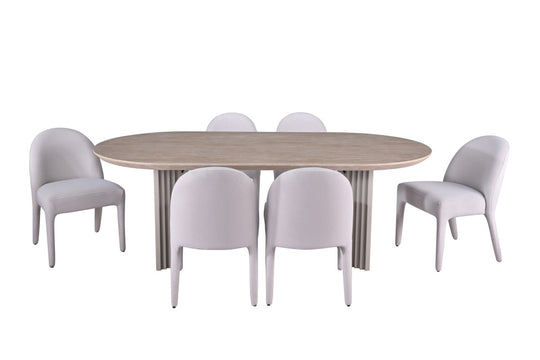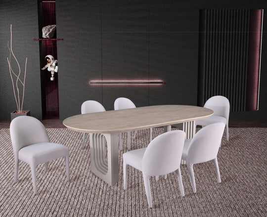 The Dafne 7-Piece Dining Set in beige brings a refined modern aesthetic to any dining space with its bold yet minimalistic design. This set includes a beautifully crafted dining table and four elegantly upholstered chairs. The...Sale price From $429.00Regular price $649.00Sale price From $429.00Regular price $649.00 -